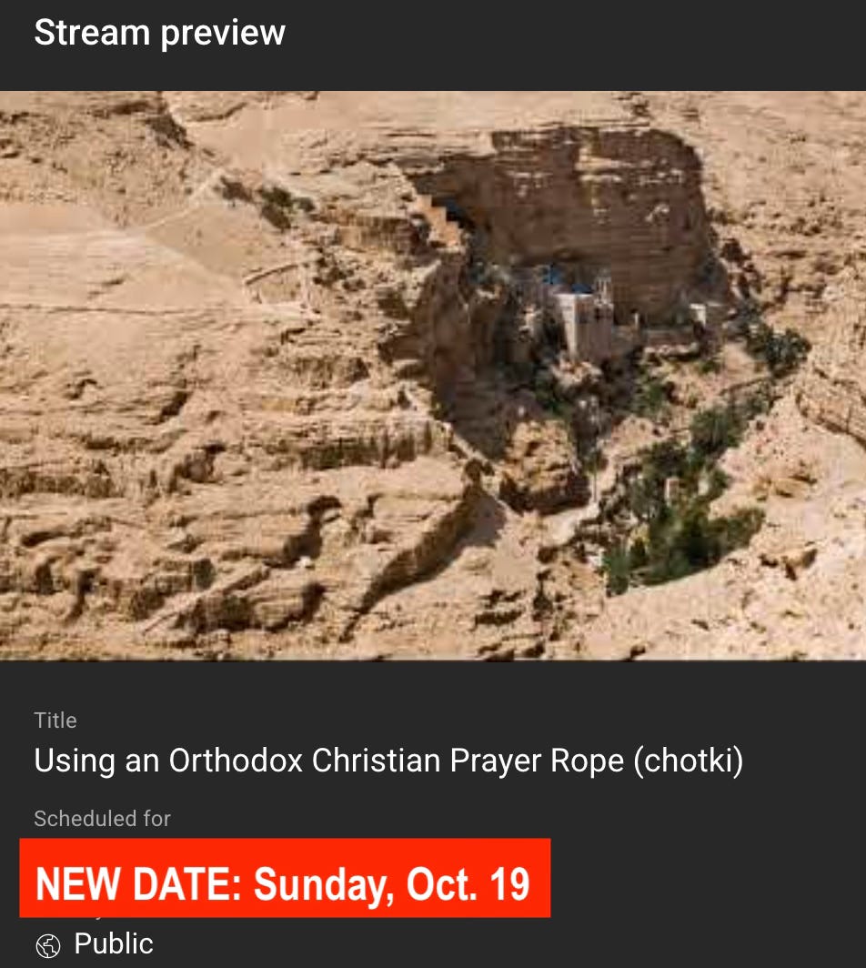 Sunday October 19 at 4pm EST join me for a short talk about the desert elders and the chotki - Or, how to use an Eastern Orthodox Prayer Rope. Go HERE.
